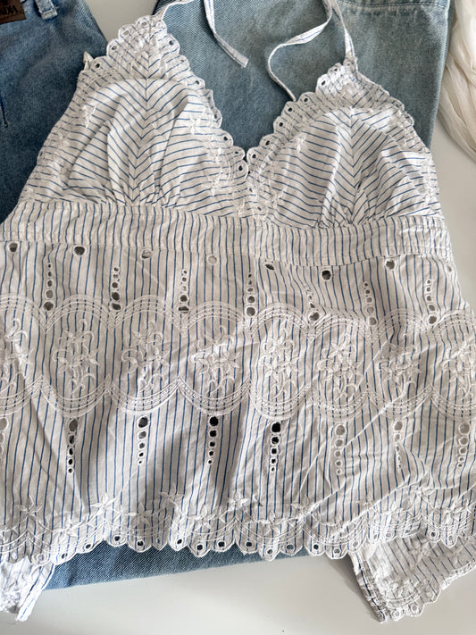 Sold outEyelet halter neck