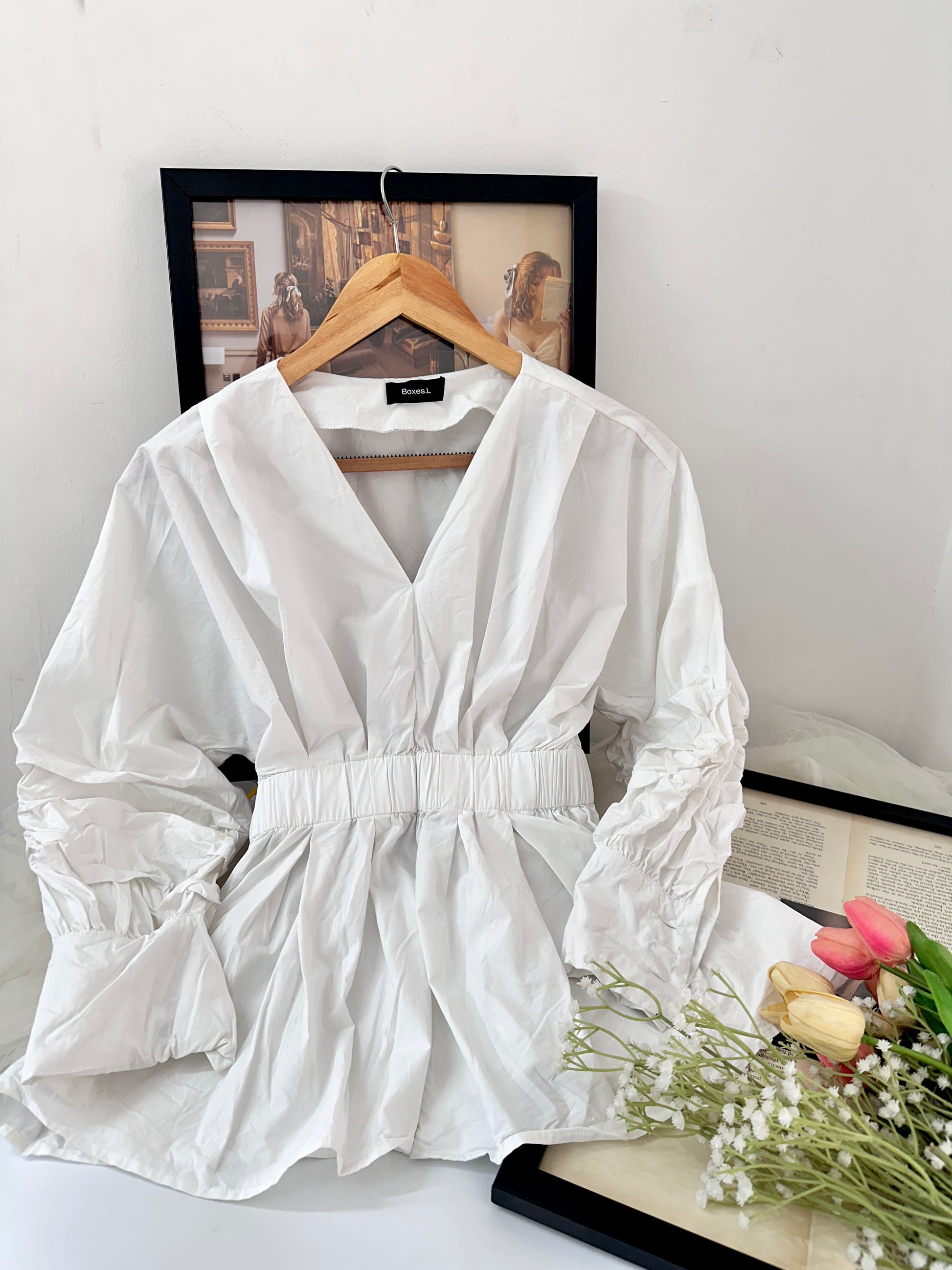 White cinched waist top